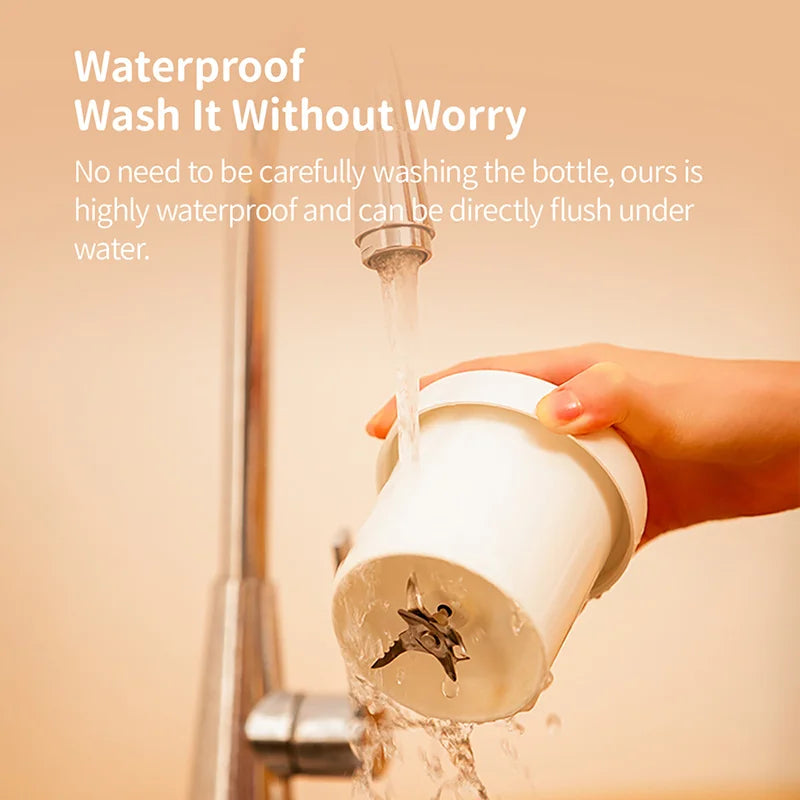 Absolutely — cleaning takes less than a minute. Simply add warm water and a drop of dish soap, then double-click the power button to let it self-clean. Rinse thoroughly and let it air-dry. The detachable cup design makes it easy to reach every corner. Avoid submerging the base in water; wipe it with a damp cloth instead to protect the electronics.